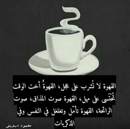 محمود درويش A Twitter القهوة لا ت شرب على عجل القهوة أخت الوقت ت ح ت سى على مهل على مهل القهوة صوت المذاق صوت الرائحة القهوة تأم ل وتغلغل في النفس وفي الذكريات