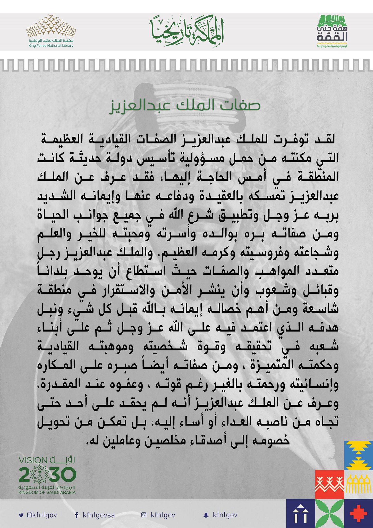 مكتبة الملك فهد الوطنية בטוויטר المملكة تاريخيا صفات الملك عبدالعزيز آل سعود طيب الله ثراه مكتبة الملك فهد الوطنية همة حتى القمه اليوم الوطني السعودي 89 Https T Co Cxzicxg6jb