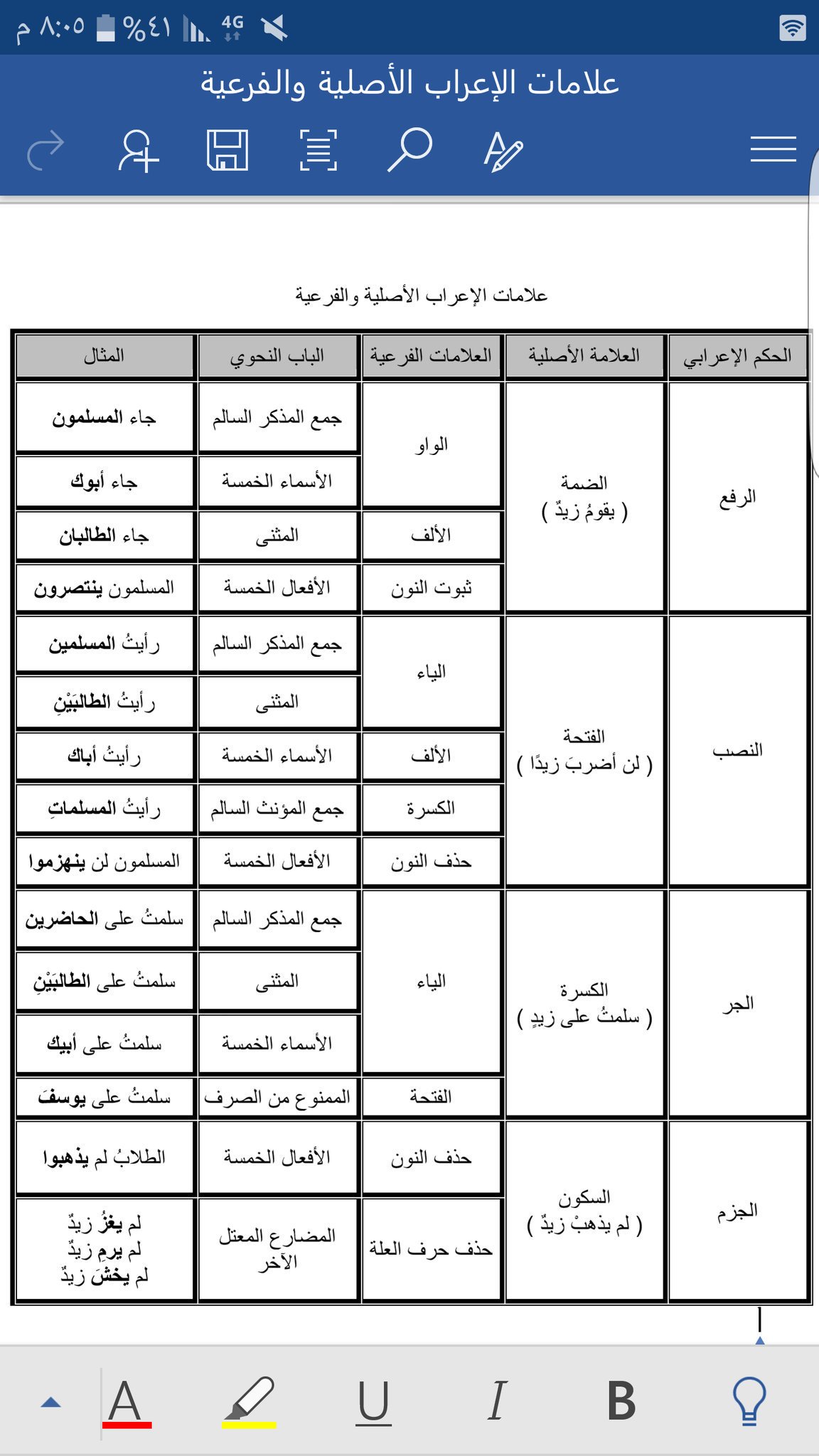 جدول علامات الإعراب الأصلية والفرعية معلومة ثقافية